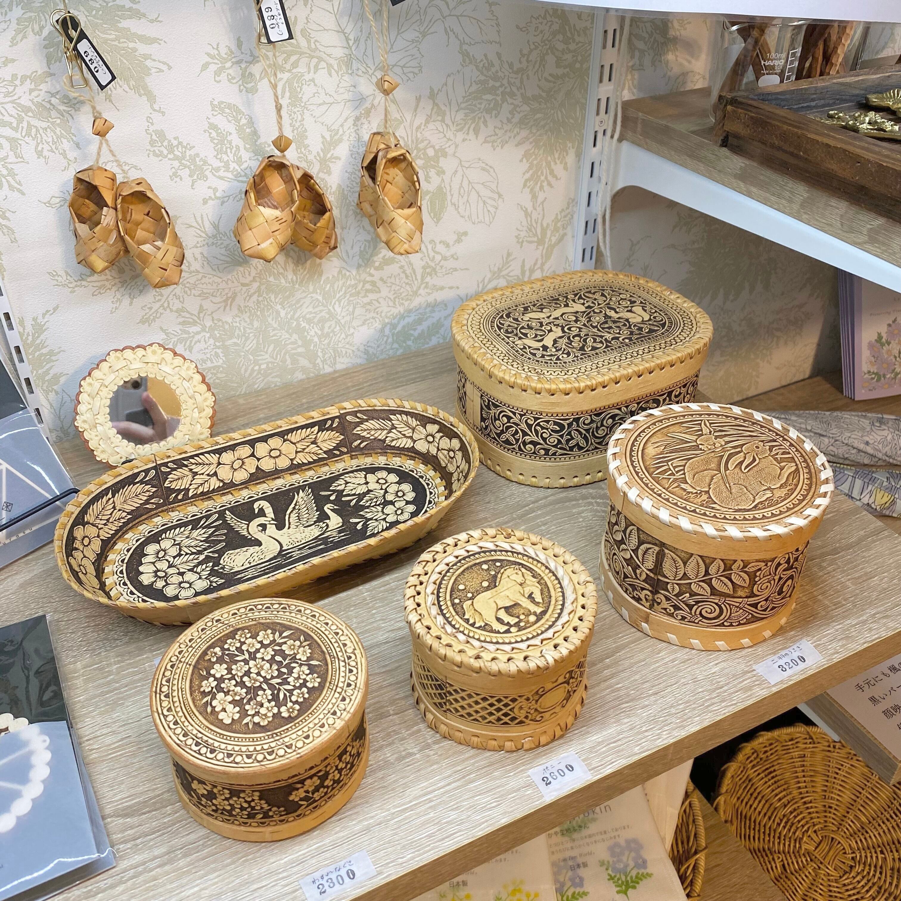 白樺樹皮加工のすてきな小物入れが入荷しました。