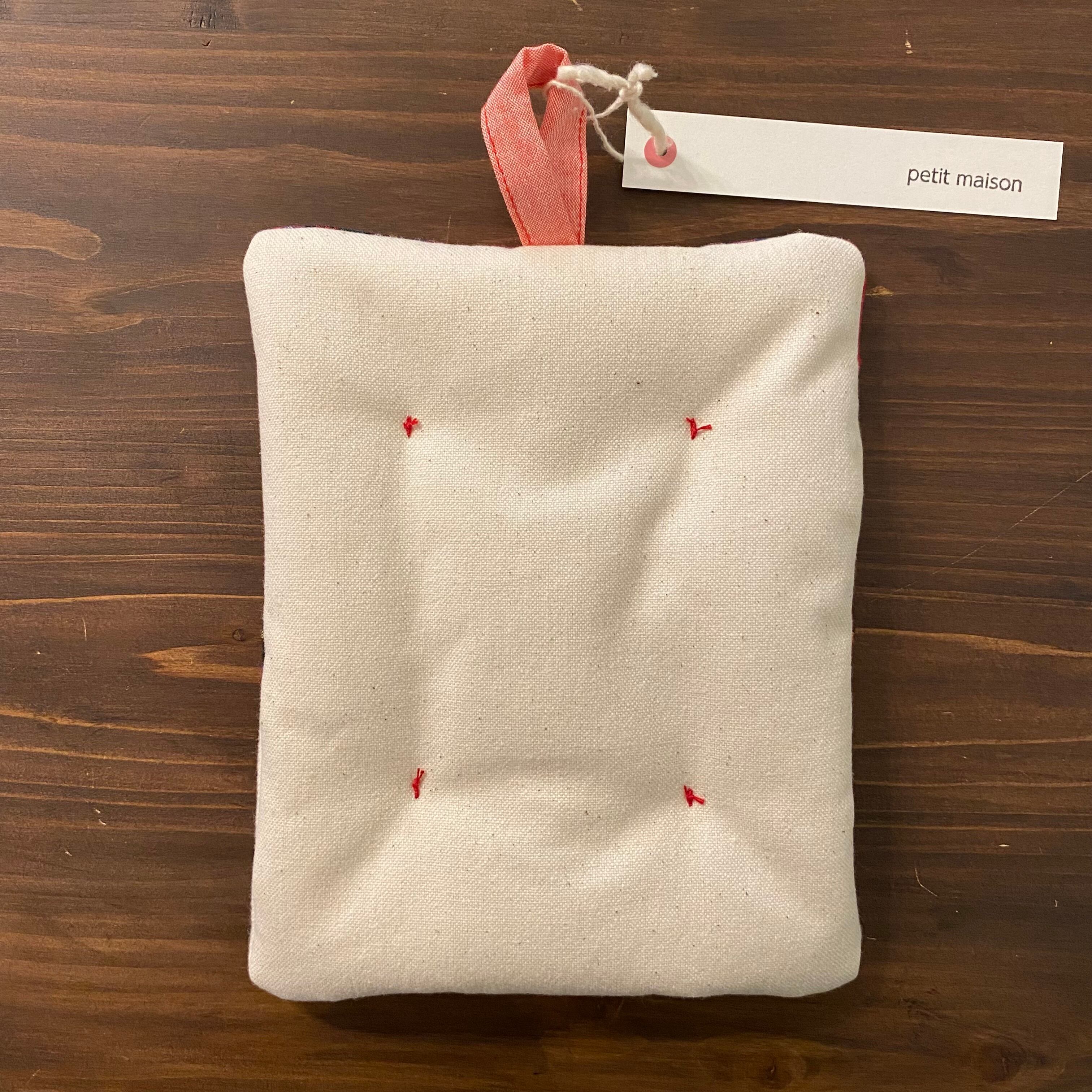 布小物作家 petit maison さんの、パッチワークがほどこされたポットマットです。