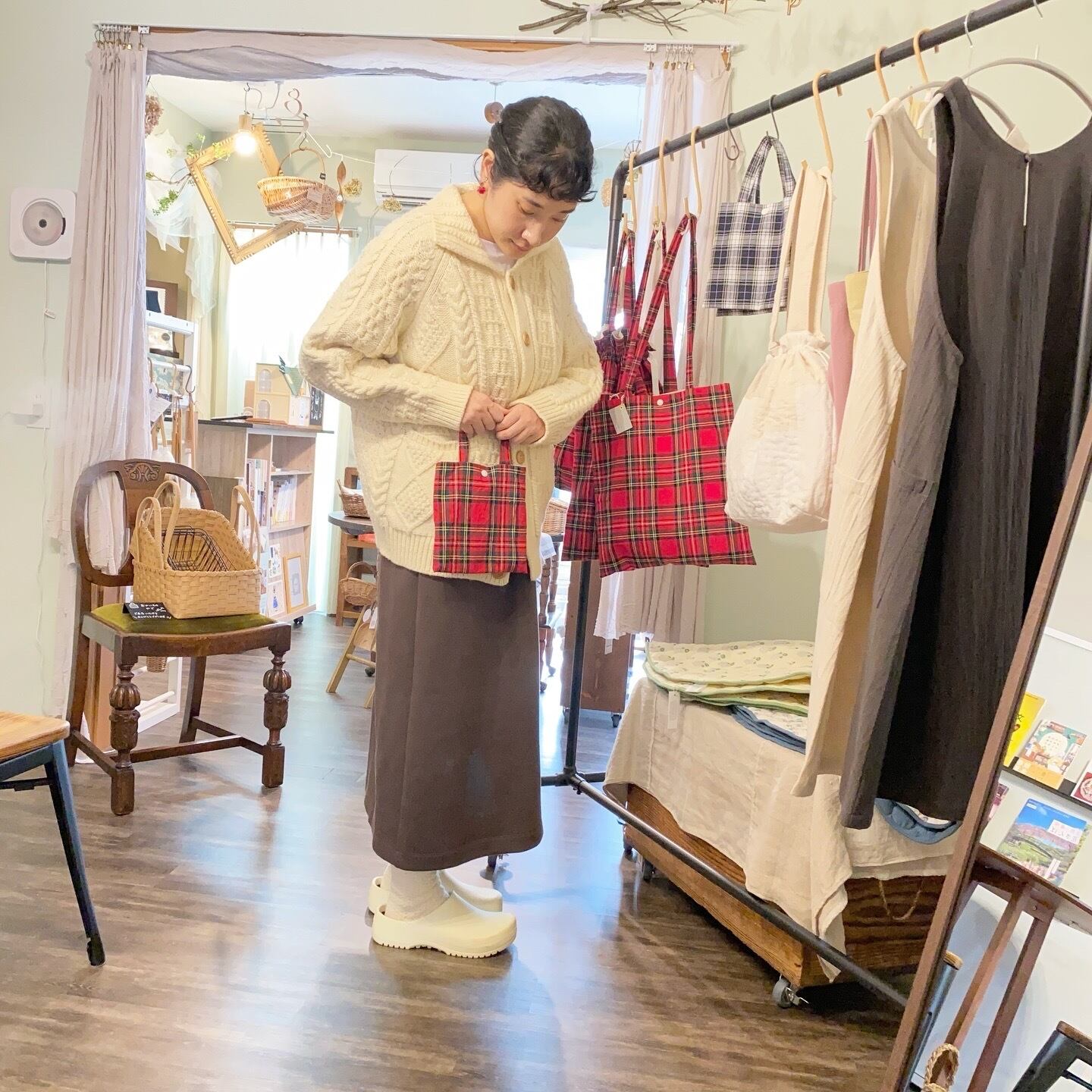 布小物作家 petit maison さんによる、心躍る秋冬アイテム「チェックミニバッグ」です。