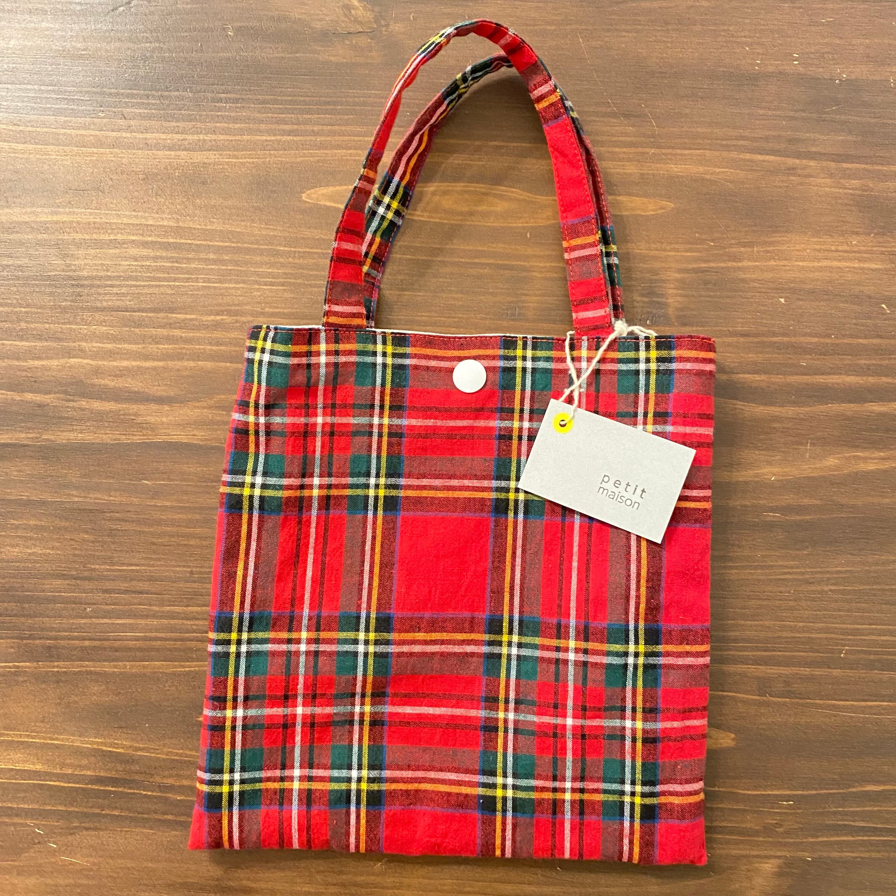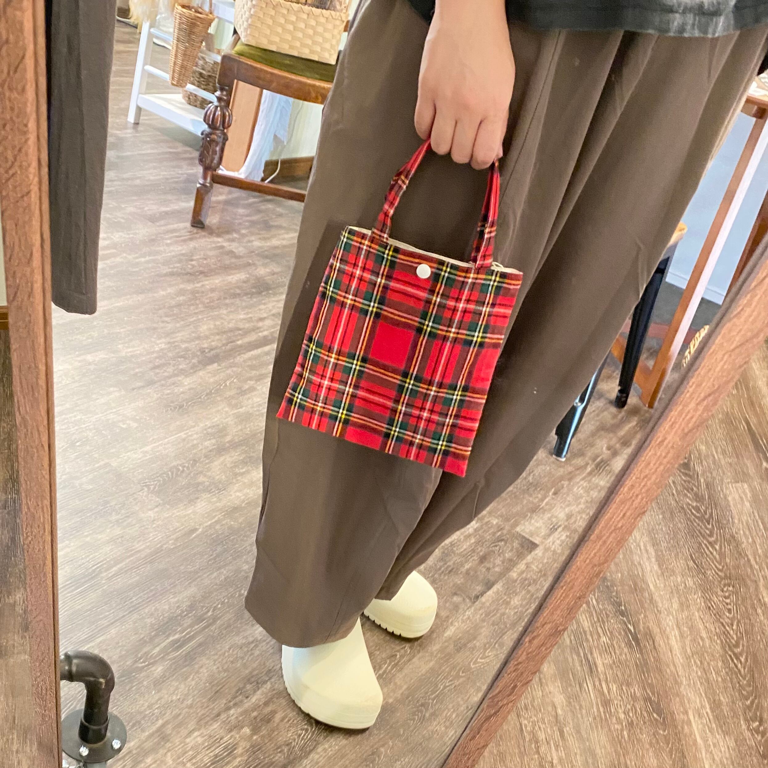 【petit maison】ミニバッグ 赤タータンチェック|秋冬コーデにおすすめの布小物