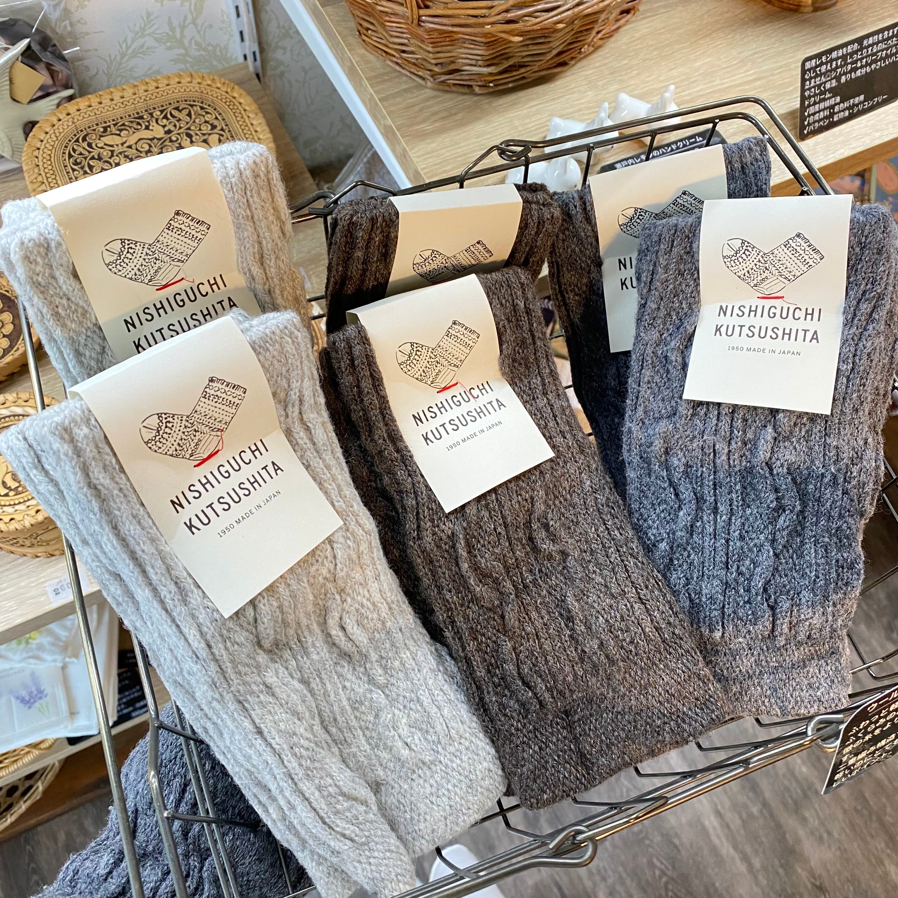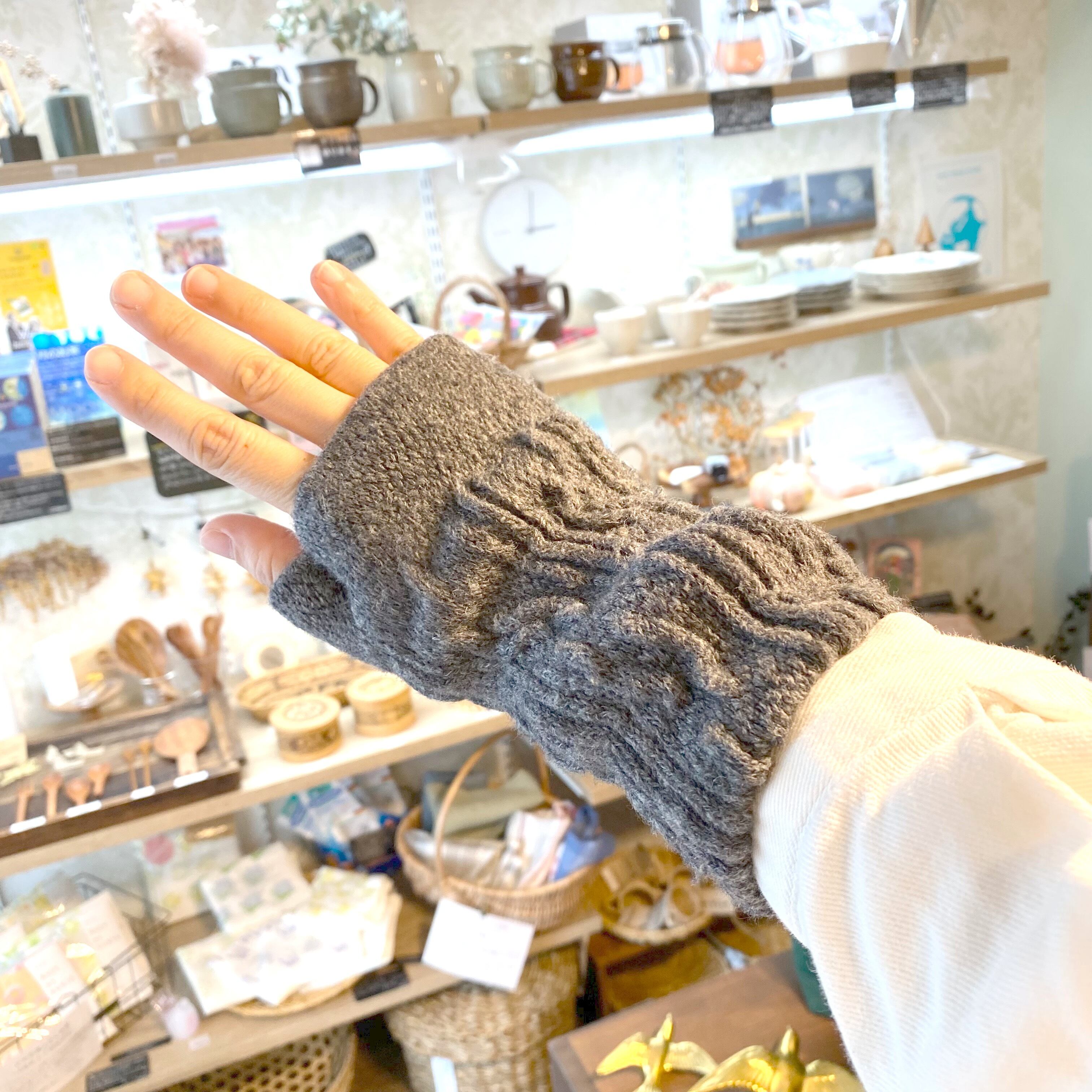 【西口靴下】ウール縄柄ハンドウォーマー/ふわっと軽くてあたたか