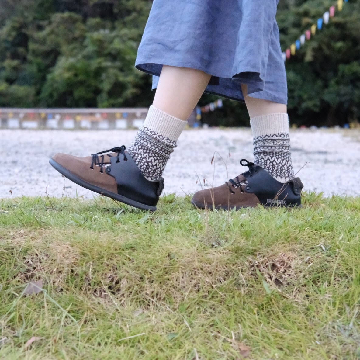 膨らみのあるウールをしっかり編み上げているので、どっしりとした履き心地でとても温か。