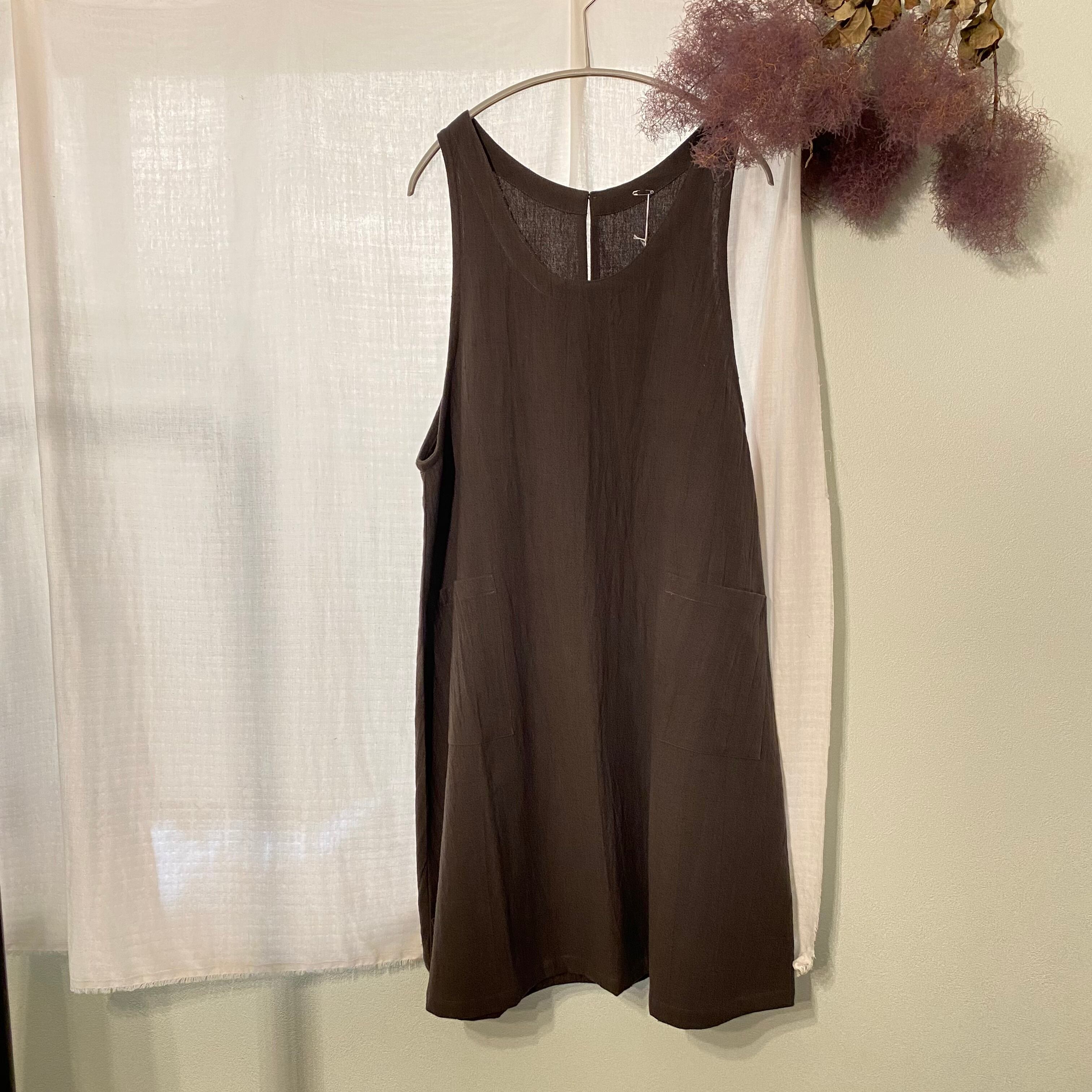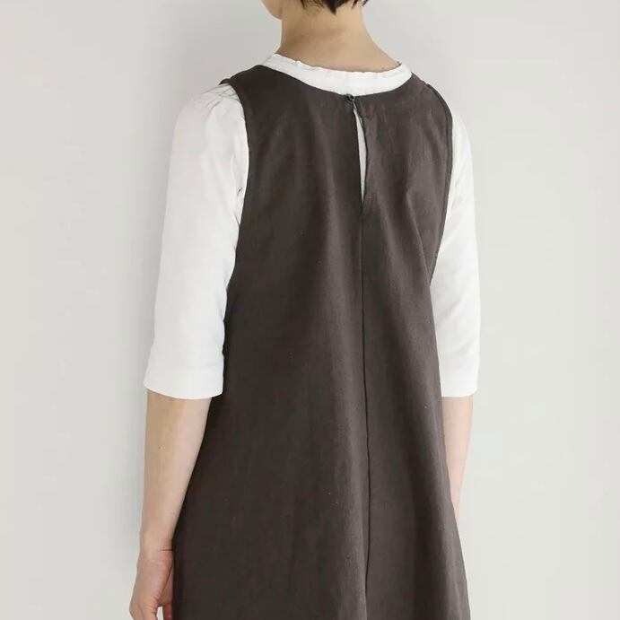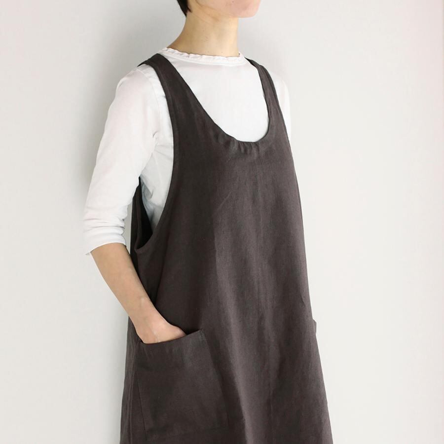 家事の合間のちょっとした外出にも使える、便利なAラインエプロンワンピースです◎