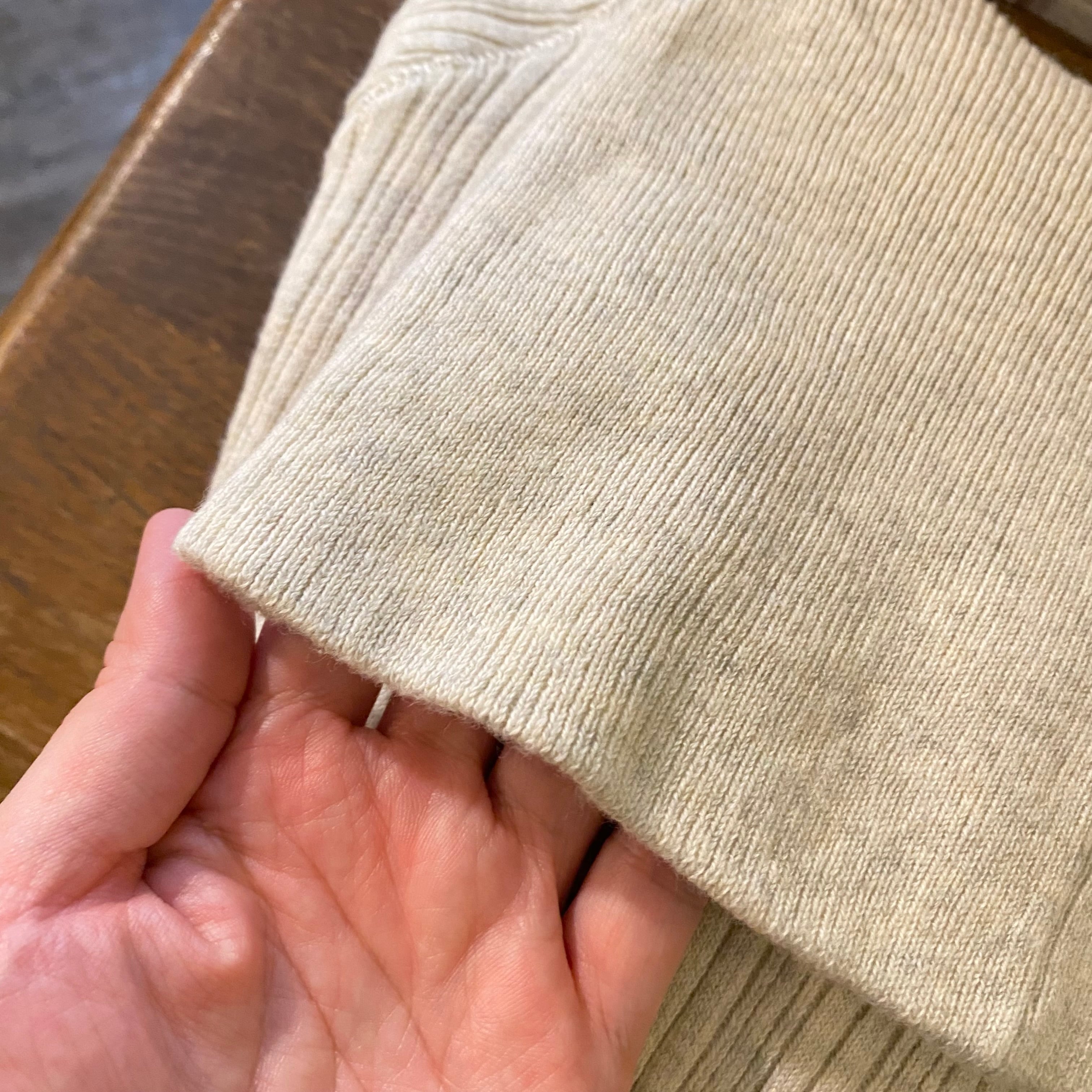 袖口はぐーんと伸ばしても、折り返してもOK。見た目よりもよく伸びて、着る方の身体にやさしくフィットします。