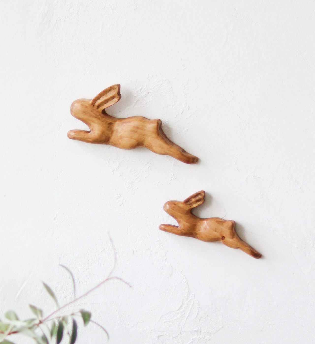 天然木でできた うさぎの親子
