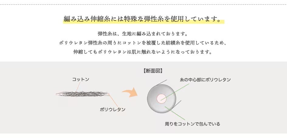 ※編み込みの伸縮糸はコットンで包まれており、肌に直接触れない仕様です