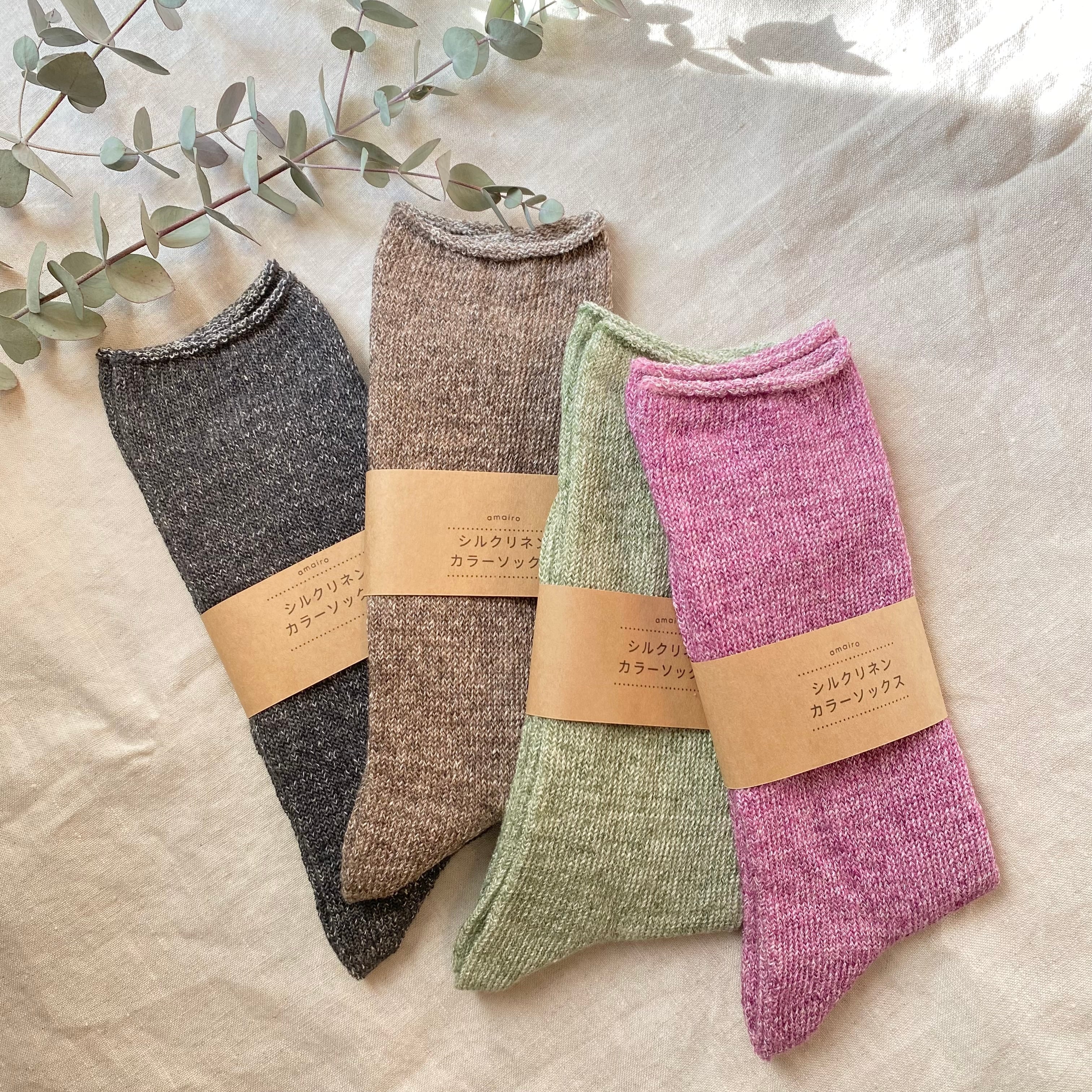 シャリっと爽やかなリネンと、なめらかなシルクの心地よさが合わさり、季節を問わず快適に履いていただけます。