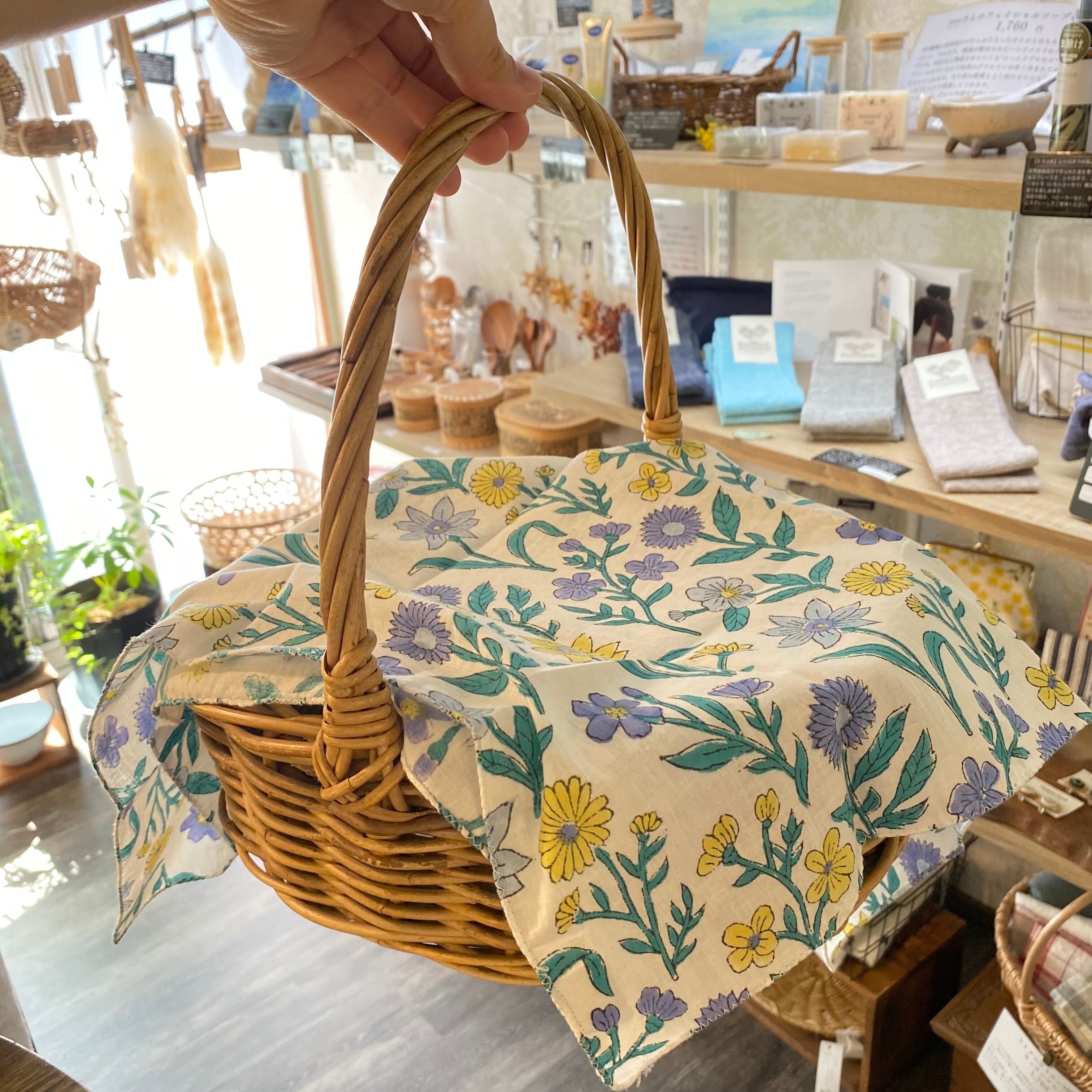 しっかりとしたコットン生地で、ハンカチとしてはもちろん、お弁当包みやかごの目隠し、首元やヘアアレンジにも◎